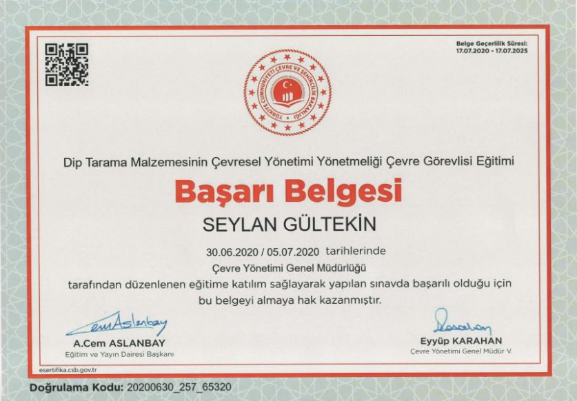 Dip Tarama Malzemesinin Çevresel Yönetim Planı Hazırlanması -